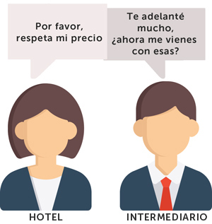 ¿Qué canales hacen disparidades?Los únicos canales que NO hacen disparidades son los que trabajan con pago directo de cliente a hotel. De las OTA con volumen de ventas, las únicos son Booking.com y Expedia sólo en su modalidad pago directo (“hotel collect”).